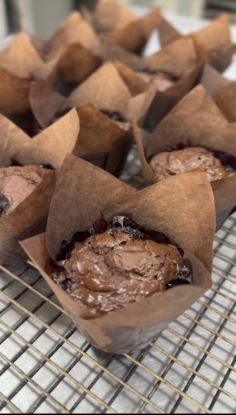 Harina de almendras, cocoa orgánica, chocolate al 70% , arándanos frescos, aceite de oliva, huevo, alulosa. Keto